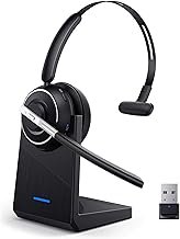 Bluetooth Headset, Wireless Headset with Microphone for PC, V5.2 Computer Headset with Noise Cancelling Mic, USB Dongle, Charging Base & Mute Button for Work, Cell Phones, Computer (Black)