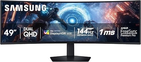 SAMSUNG 49-inch Odyssey G9 (G91F) DQHD, 144Hz, Curved Gaming Monitor, Ultra-Wide 32:9 Screen, DisplayHDR 600, AMD FreeSync™ Premium Pro, Ergonomic Stand, LS49FG910ENXZA, 2025